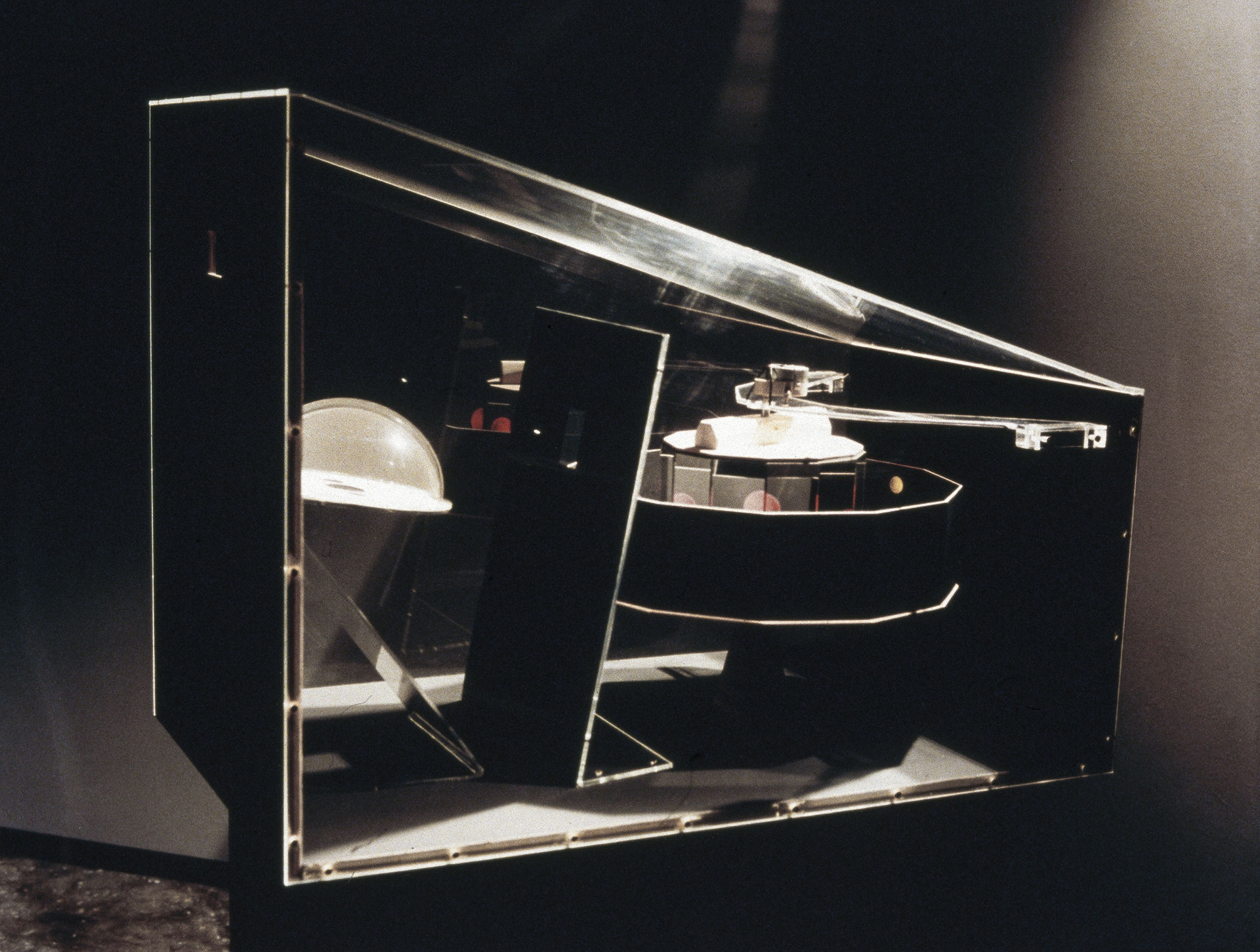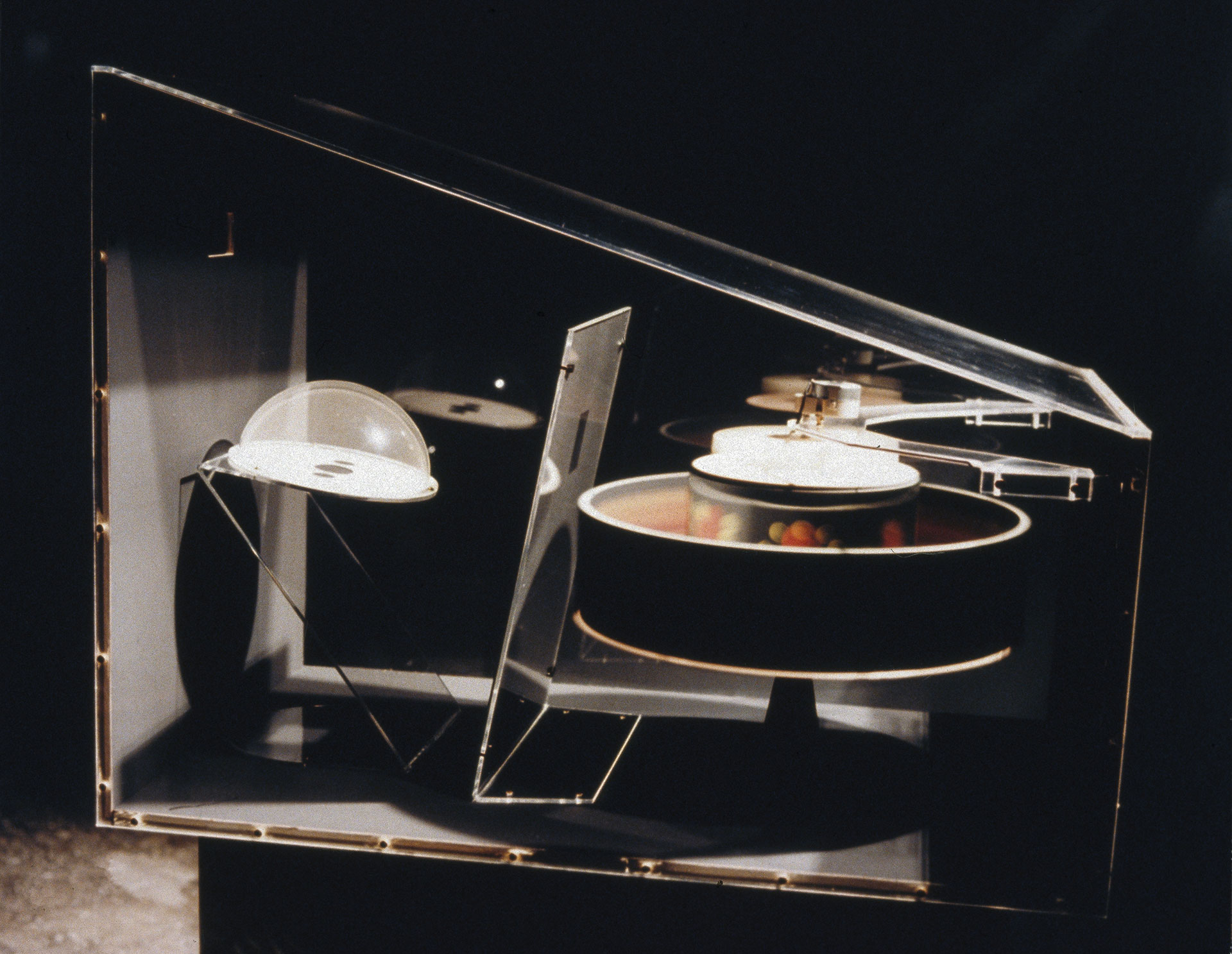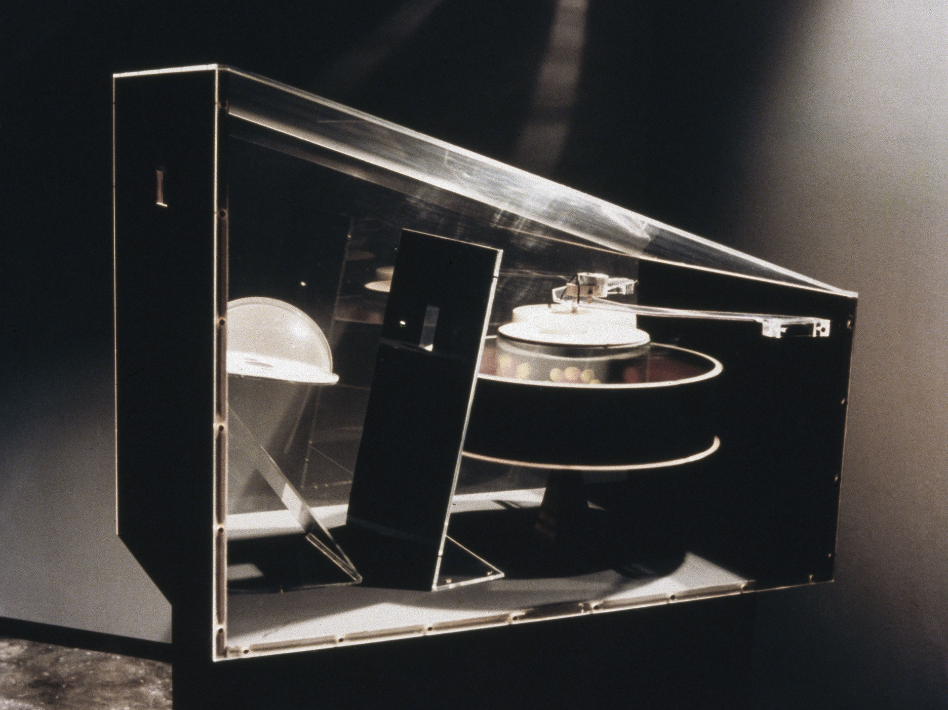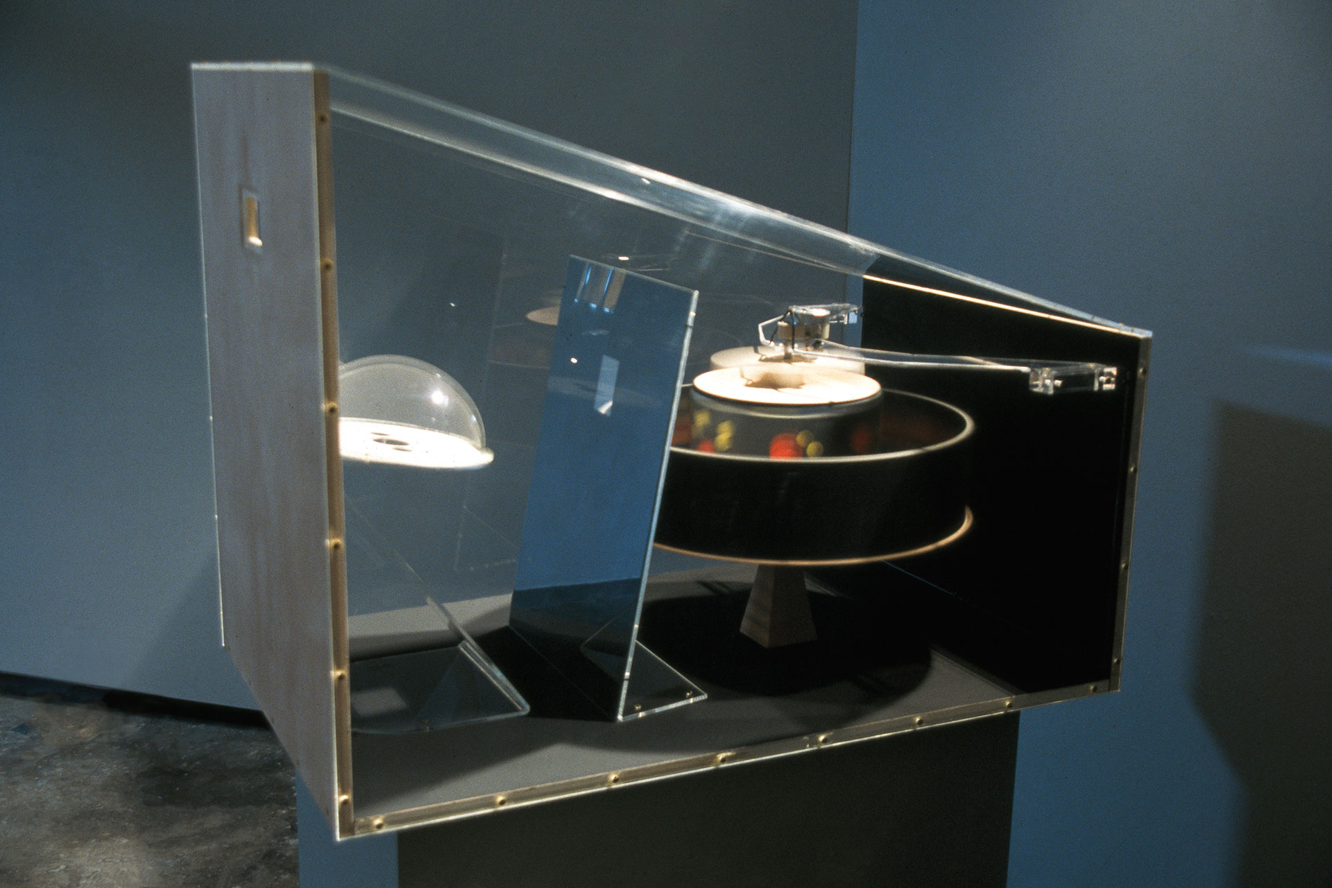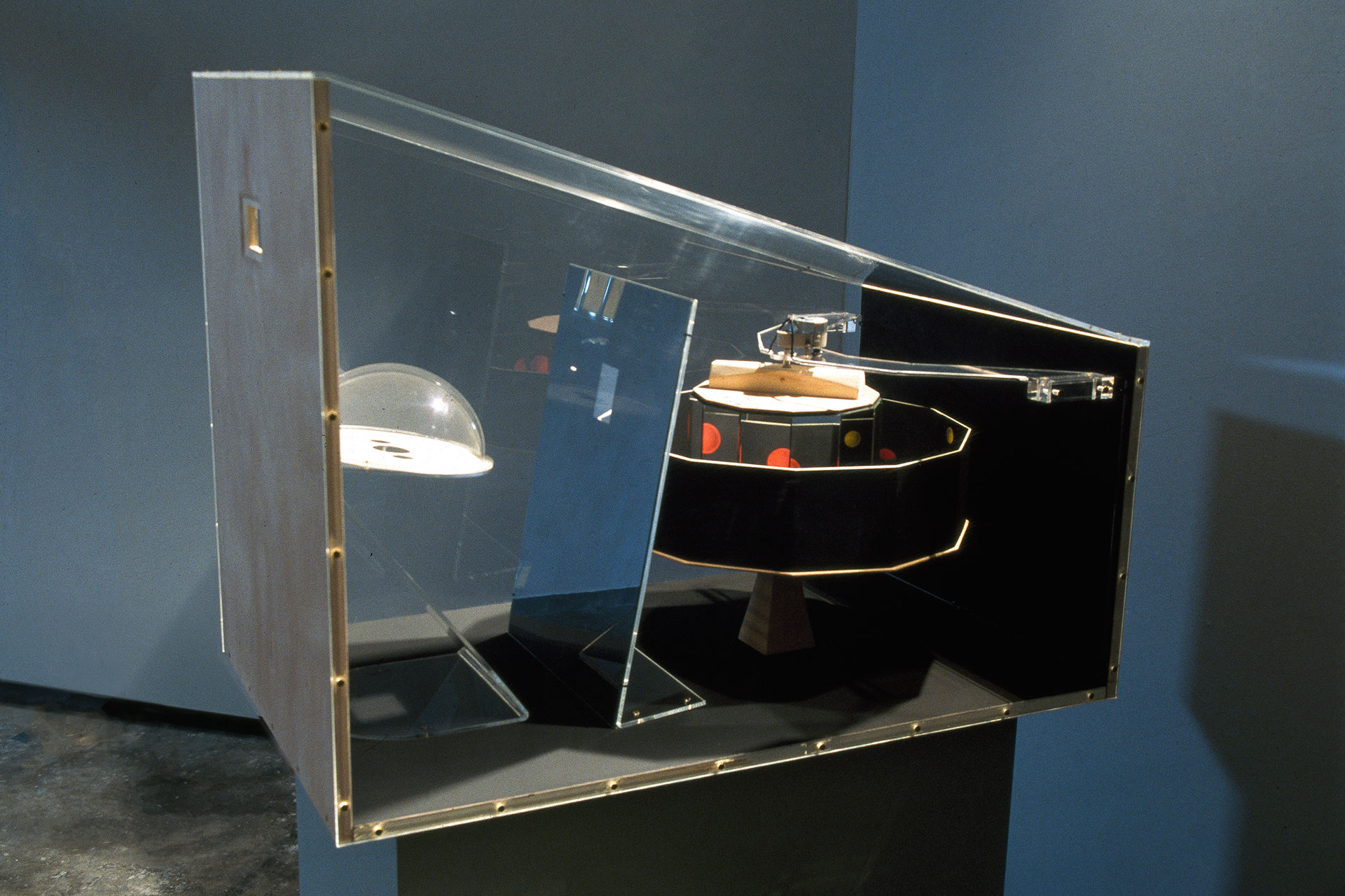 Υλικά: χαρτόνι, ξύλο, plexiglas, καθρέπτης, ηλεκτρικός κινητήρας Διαστάσεις: Υ 72 cm, Π 60 cm, Β 96 cm 1995