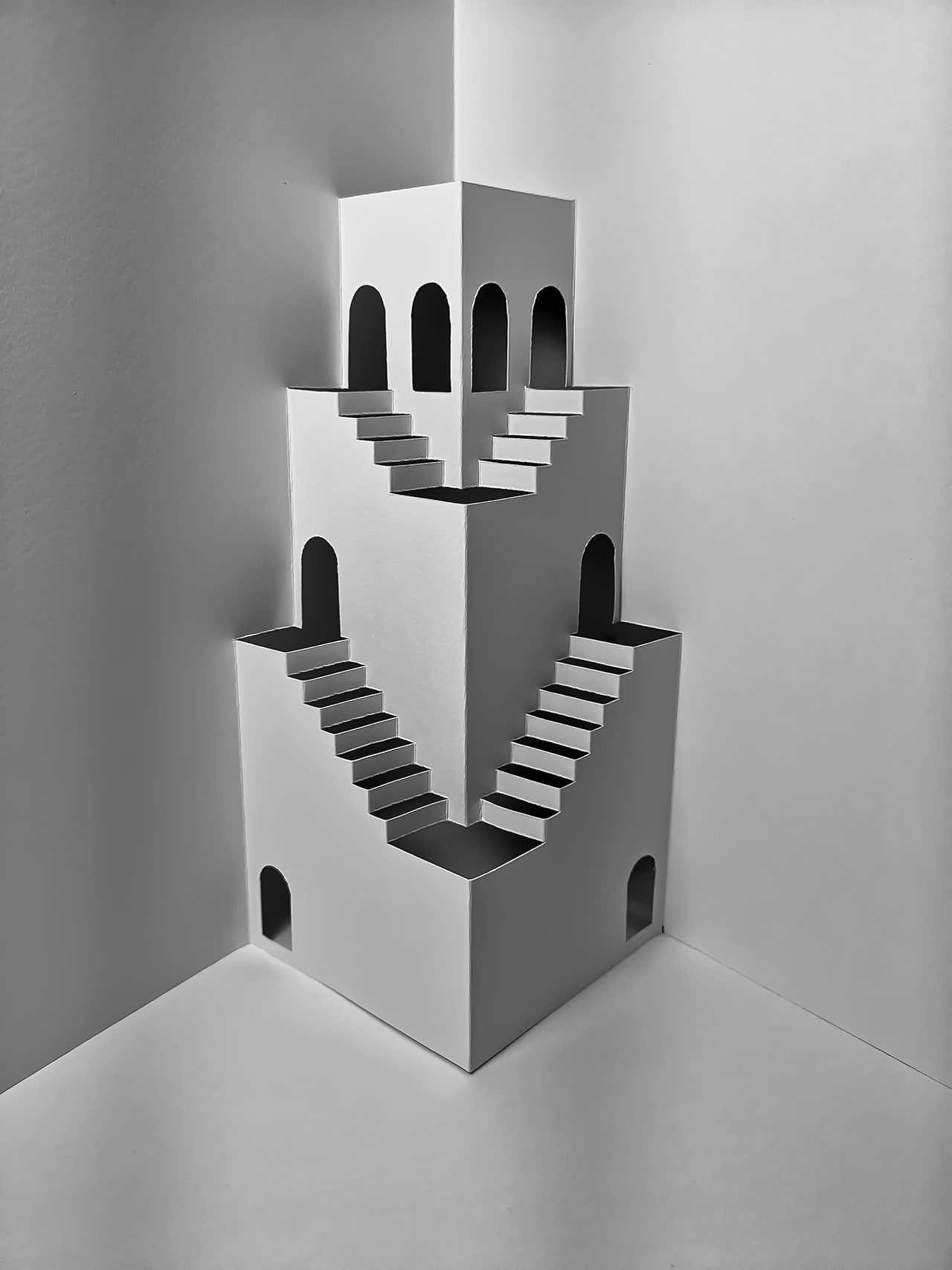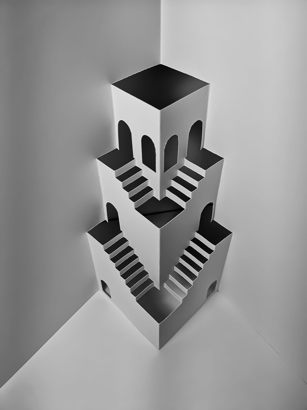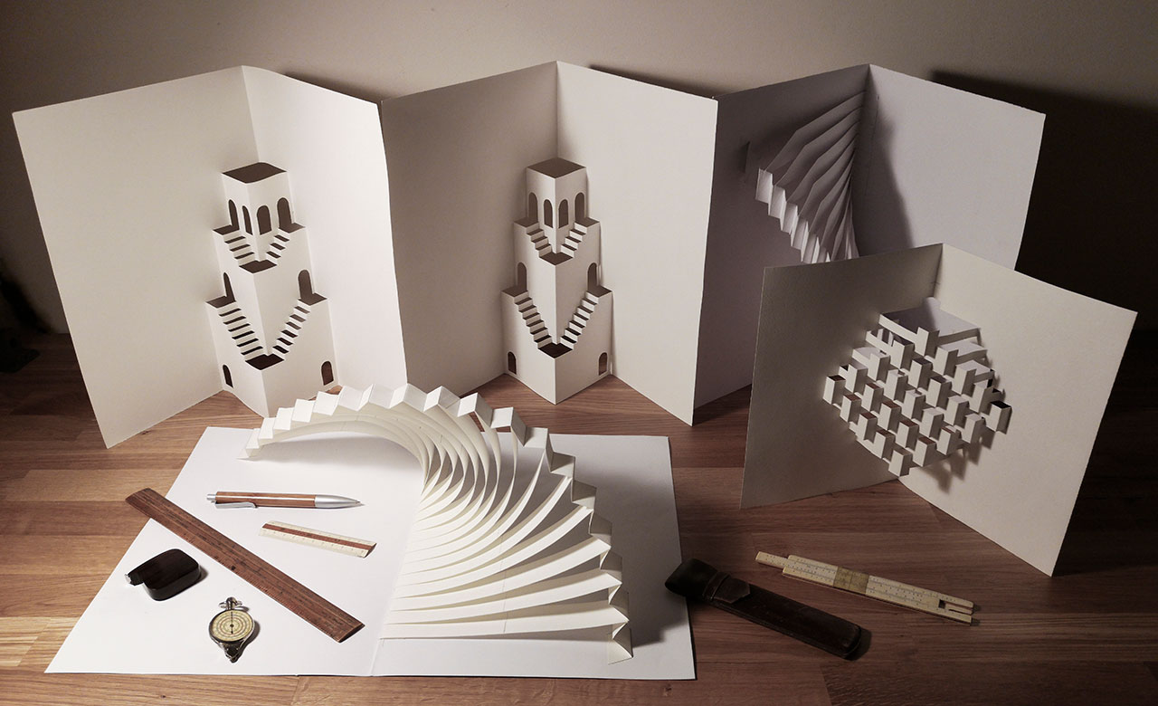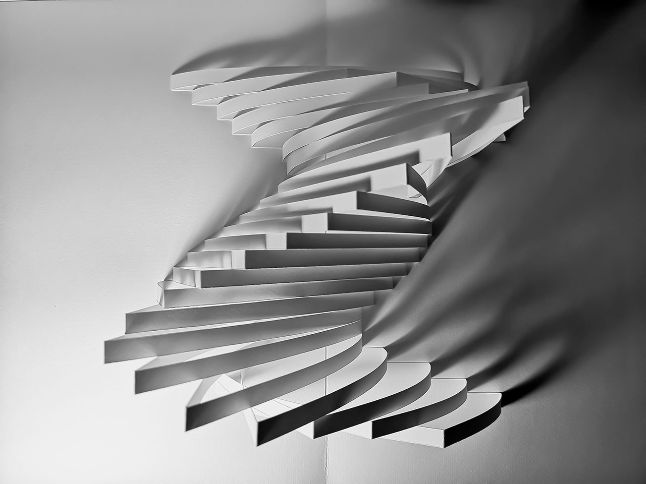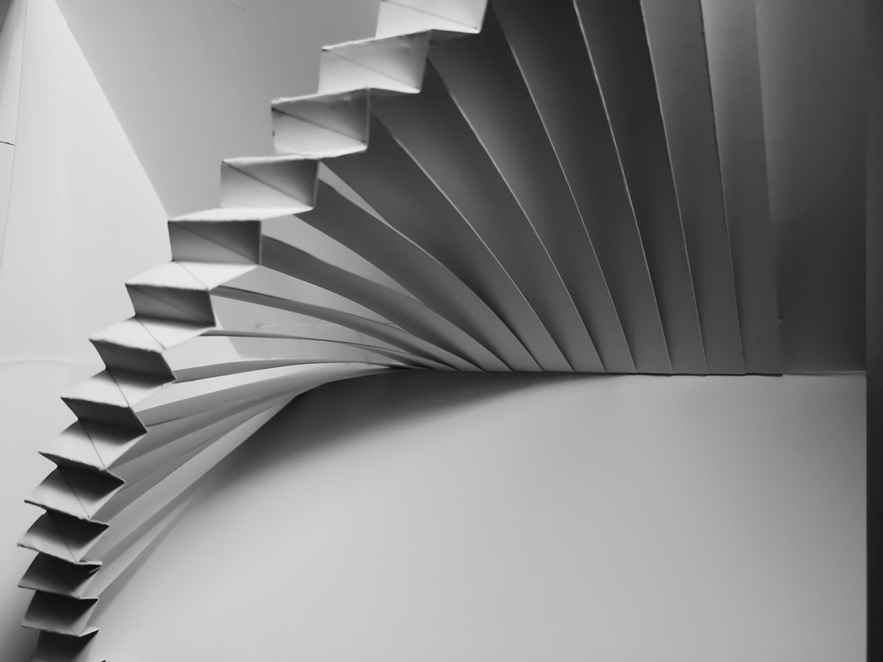 Παρουσίαση εικαστικού εργαστηρίου με δημιουργία τρισδιάστατων κατασκευών σε λευκό χαρτόνι. Αναπτύγματα γεωμετρικών σχηματισμών, με την τεχνική της χαρτοκοπτικής, διαμορφώνουν στον χώρο των τριών διαστάσεων, ευφάνταστες γεωμετρικές δομές. Με την χρήση του φωτός, αναδεικνύουμε την αρχιτεκτονική δομή της σύνθεσης, σκηνογραφώντας με την σκιά τους.