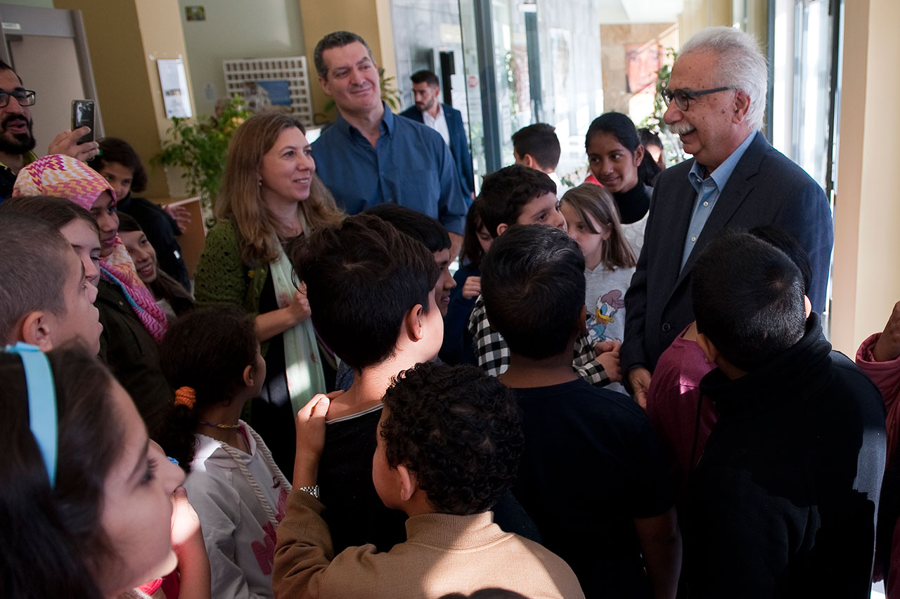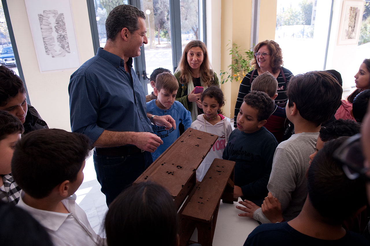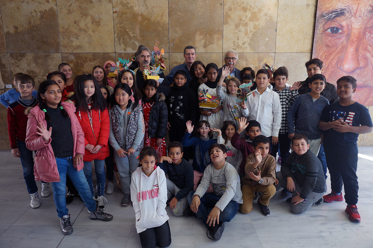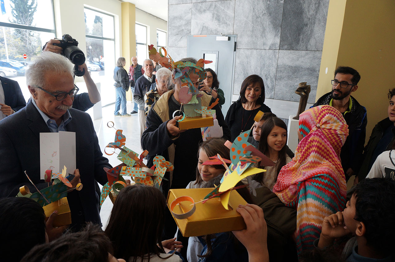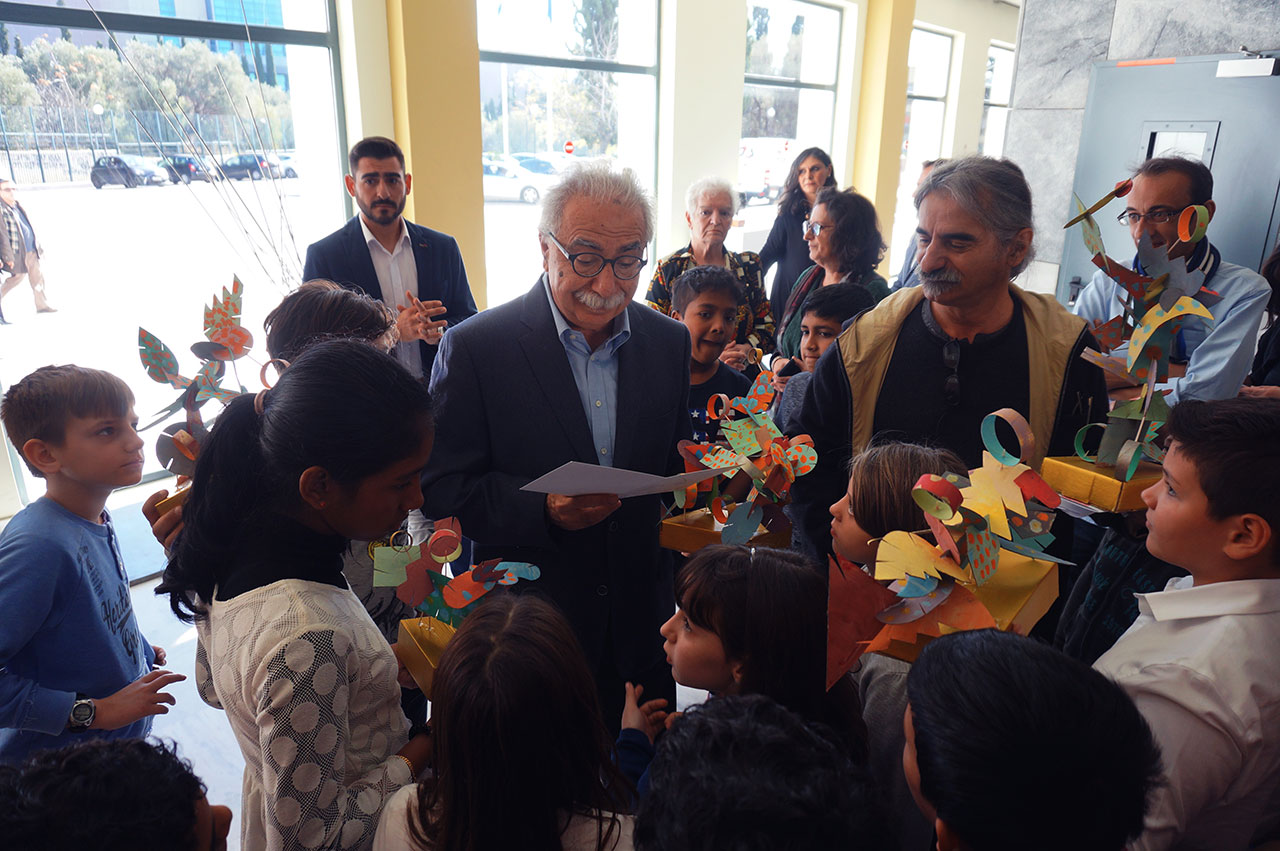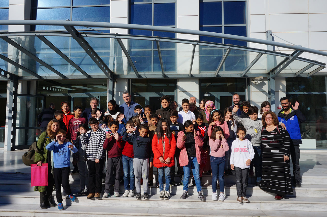 Οι πρώτοι επισκέπτες της έκθεσης ήταν 33 μαθητές της Δ’, Ε’ και Στ’ τάξης του 49ου Δημοτικού Σχολείου Αθηνών, στο οποίο φοιτούν και παιδιά προσφύγων.