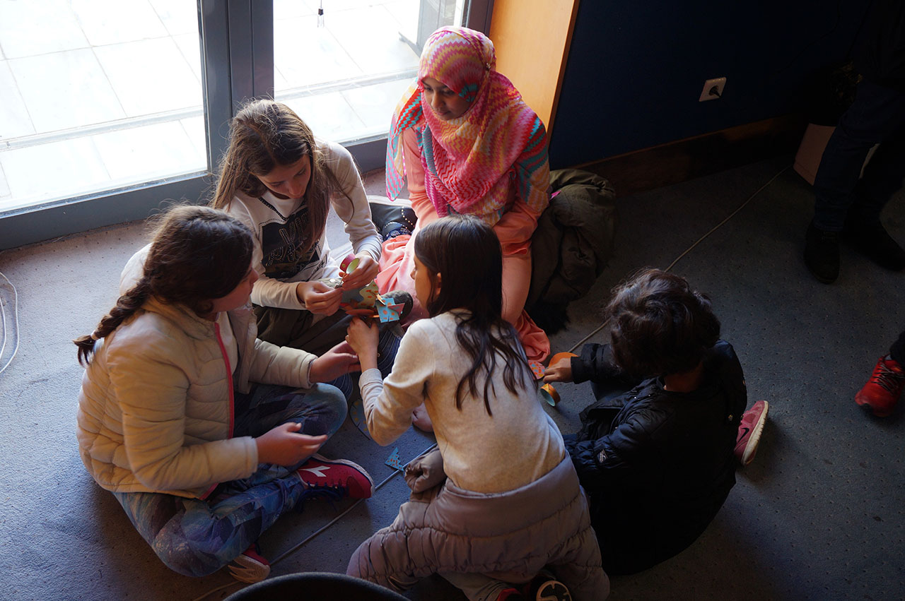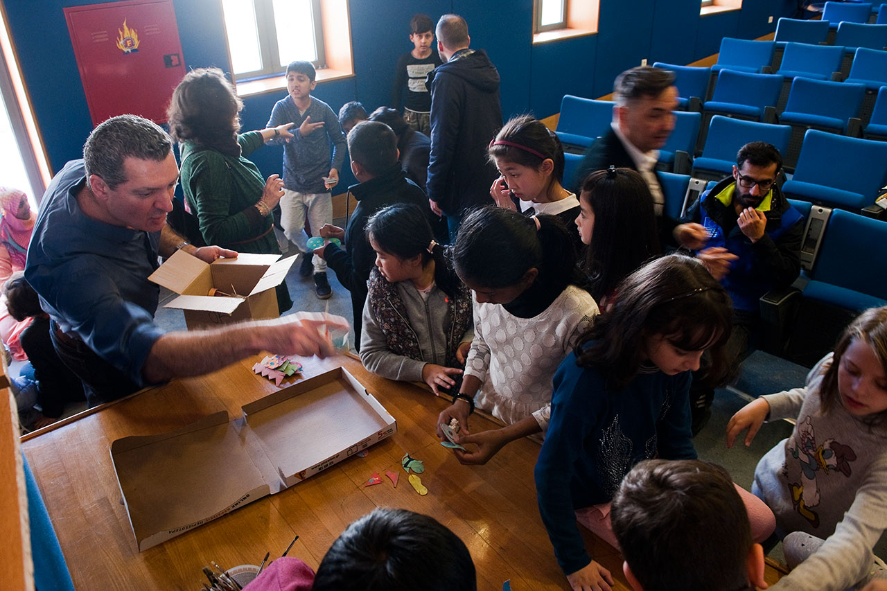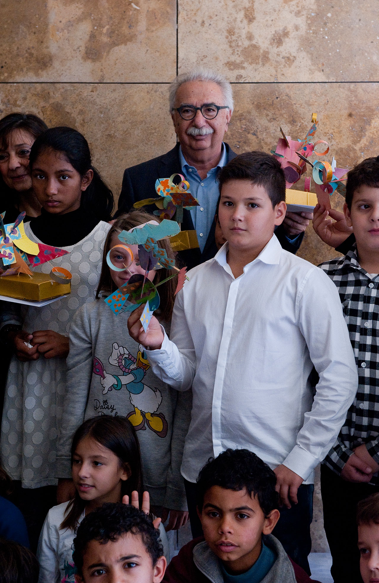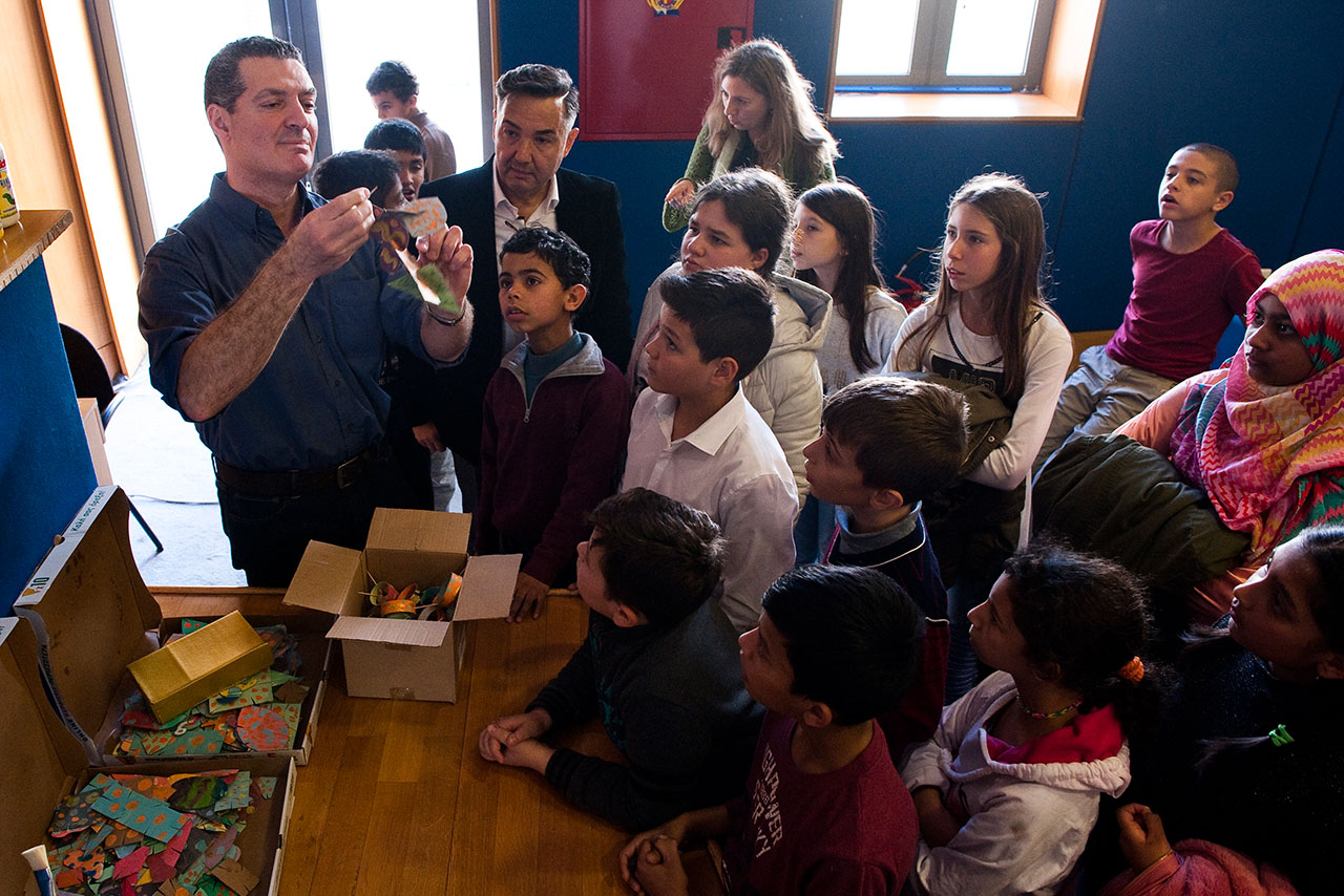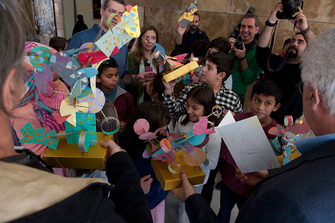 Οι πρώτοι επισκέπτες της έκθεσης ήταν 33 μαθητές της Δ’, Ε’ και Στ’ τάξης του 49ου Δημοτικού Σχολείου Αθηνών, στο οποίο φοιτούν και παιδιά προσφύγων.