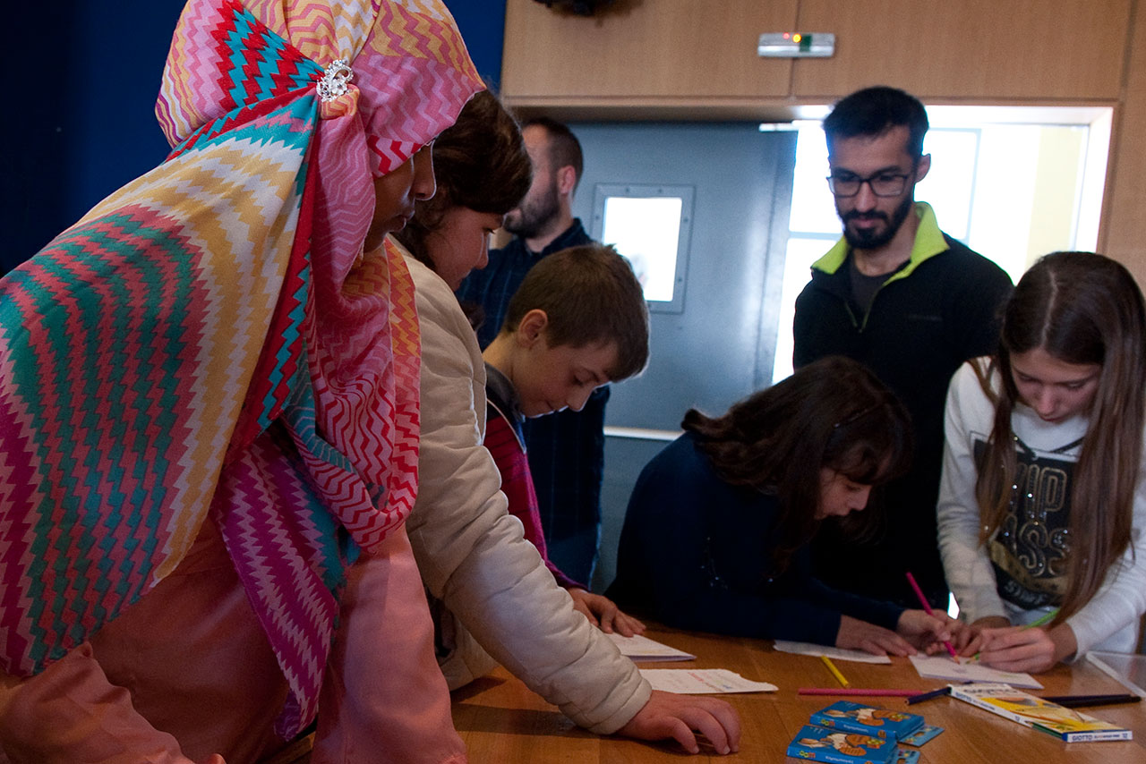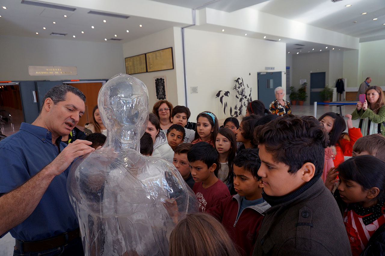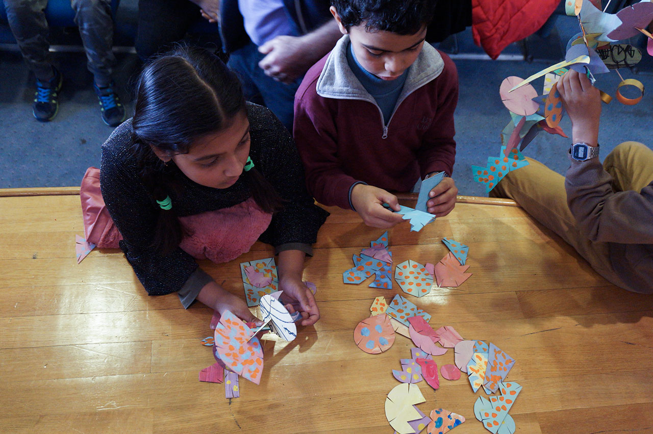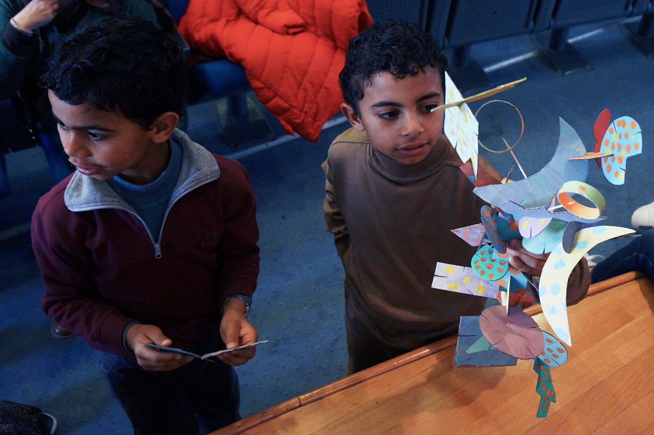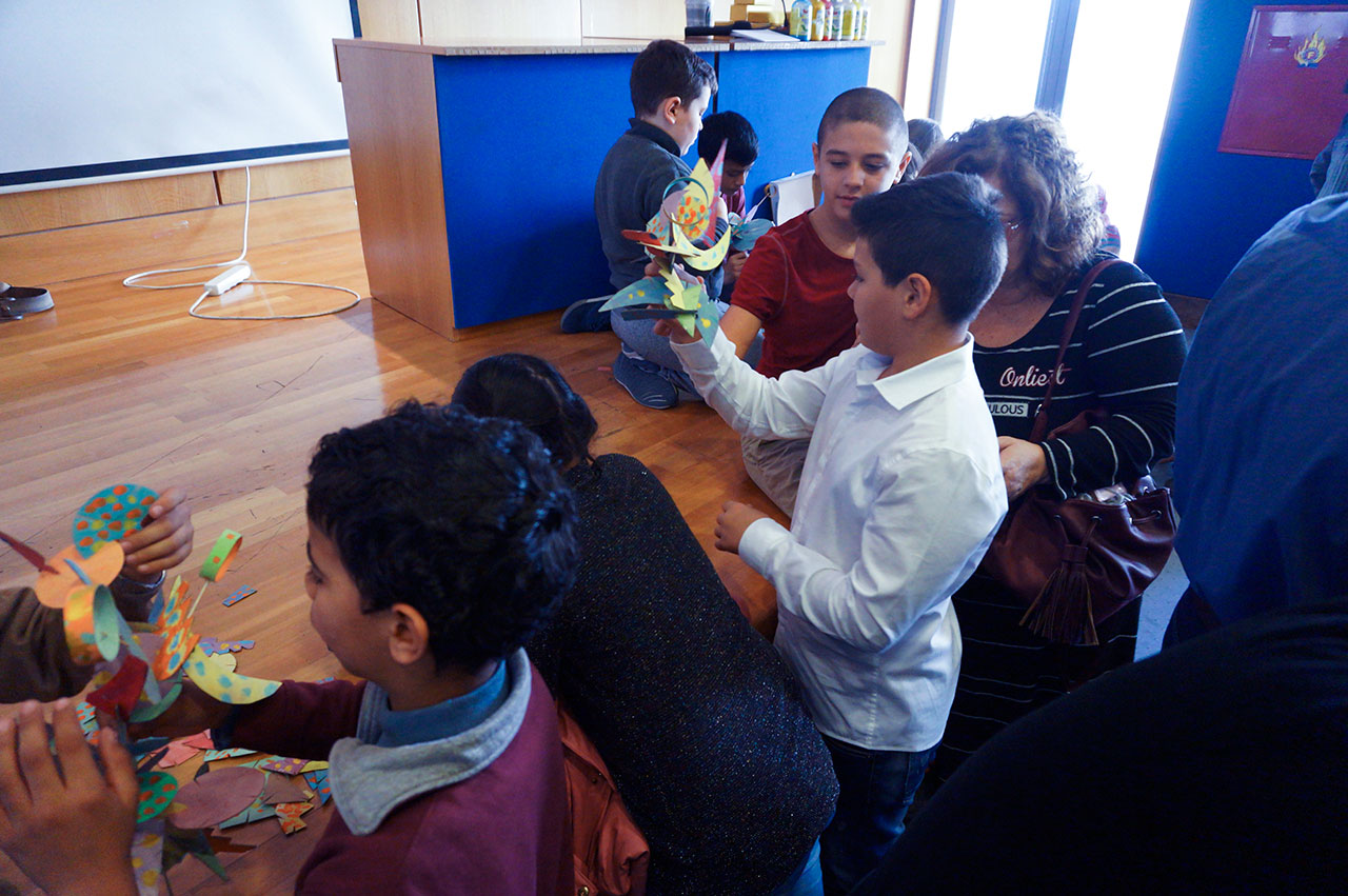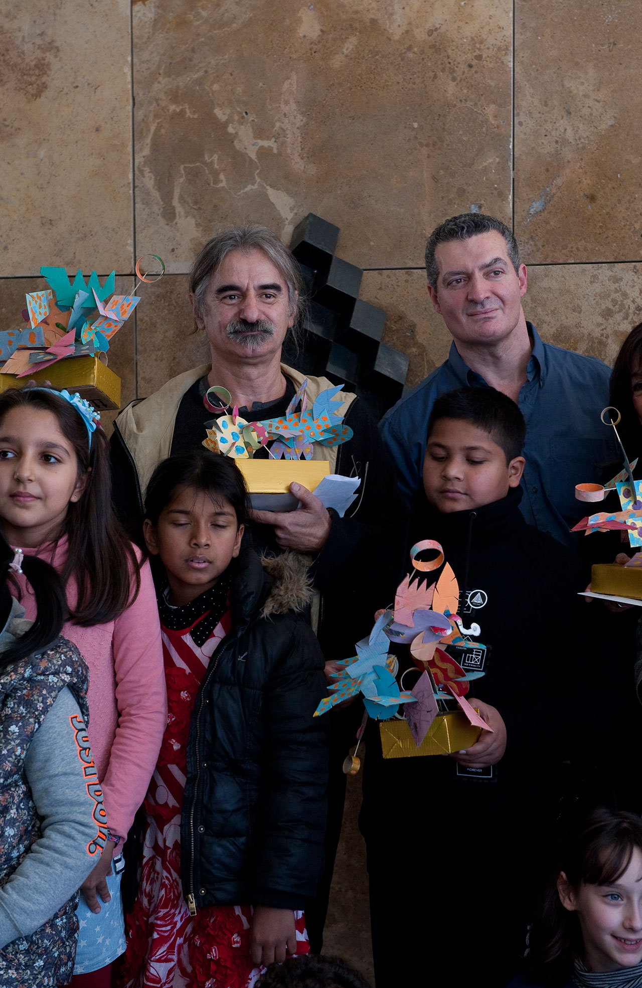 Οι πρώτοι επισκέπτες της έκθεσης ήταν 33 μαθητές της Δ’, Ε’ και Στ’ τάξης του 49ου Δημοτικού Σχολείου Αθηνών, στο οποίο φοιτούν και παιδιά προσφύγων.