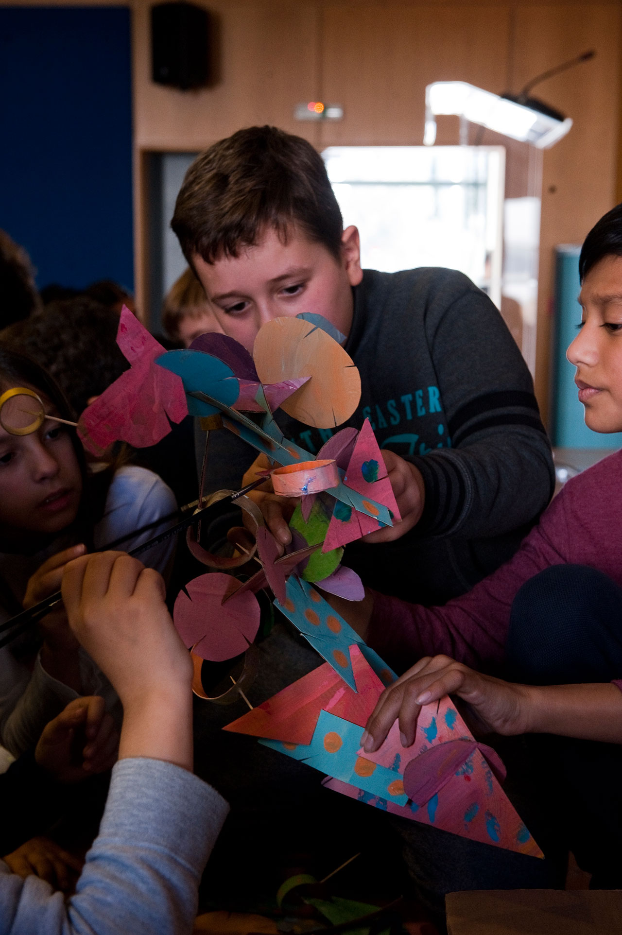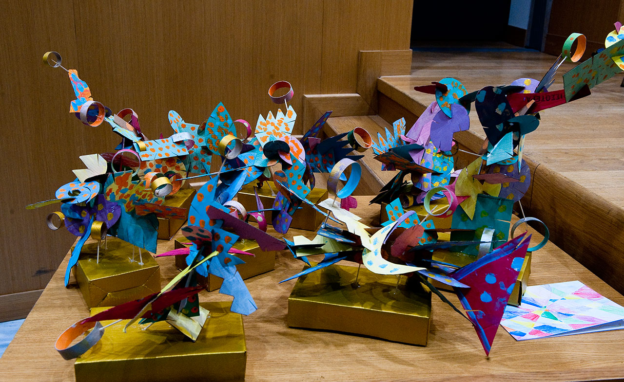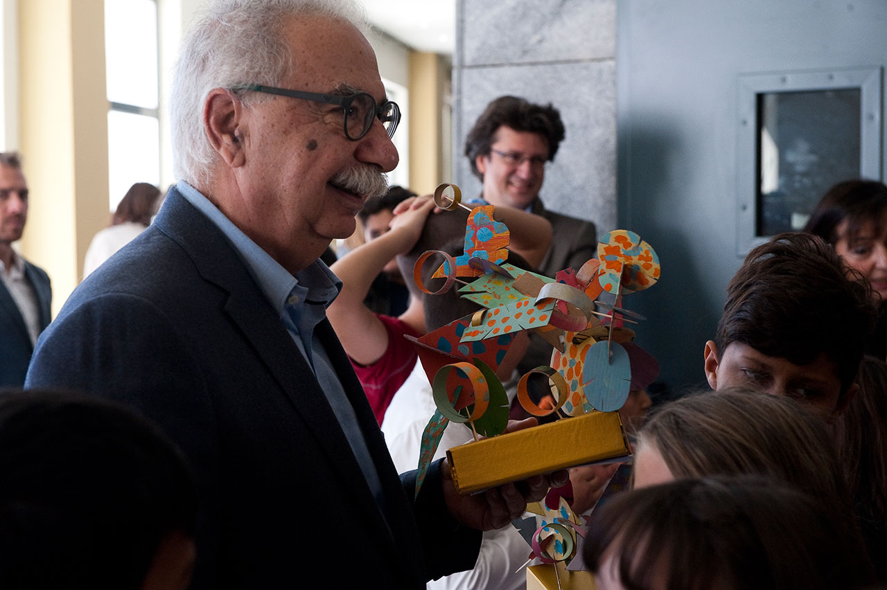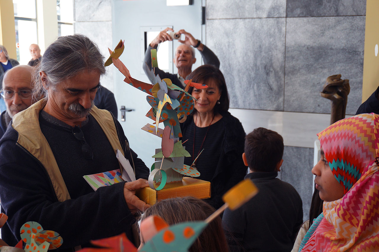 Με την καθοδήγηση του εικαστικού Νίκου Έξαρχου, και υπεύθυνου του εκπαιδευτικού προγράμματος, οι μαθητές είχαν την ευκαιρία να ξεναγηθούν στο Φουαγιέ του Υπουργείου και να δημιουργήσουν τα δικά τους εικαστικά έργα στην αίθουσα «Γαλάτεια Σαράντη». Τα παιδιά χάρισαν δημιουργίες τους στην σύζυγο του εκλιπόντος γενικού γραμματέα, Ειρήνη Παραλίκα-Παντή, που ήταν παρούσα στην εκδήλωση, στον Κώστα Γαβρόγλου και στον πρύτανη της ΑΣΚΤ, Πάνο Χαραλάμπους. Τα υπόλοιπα εικαστικά γλυπτά που δημιουργήθηκαν από τους μαθητές στο εικαστικό εργαστήριο, θα εκτεθούν μόνιμα στους χώρους του Υπουργείου Παιδείας, δίπλα στα άλλα εικαστικά έργα της έκθεσης.