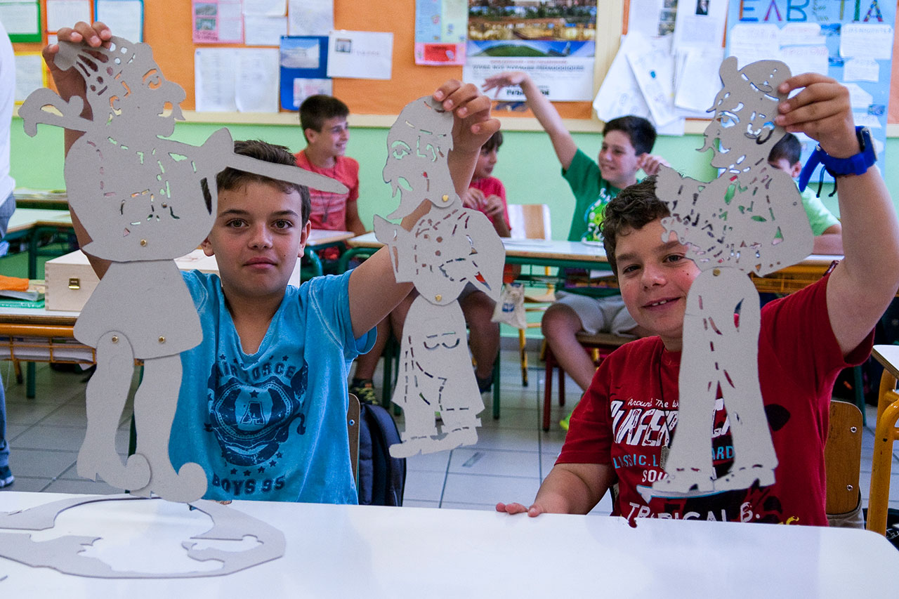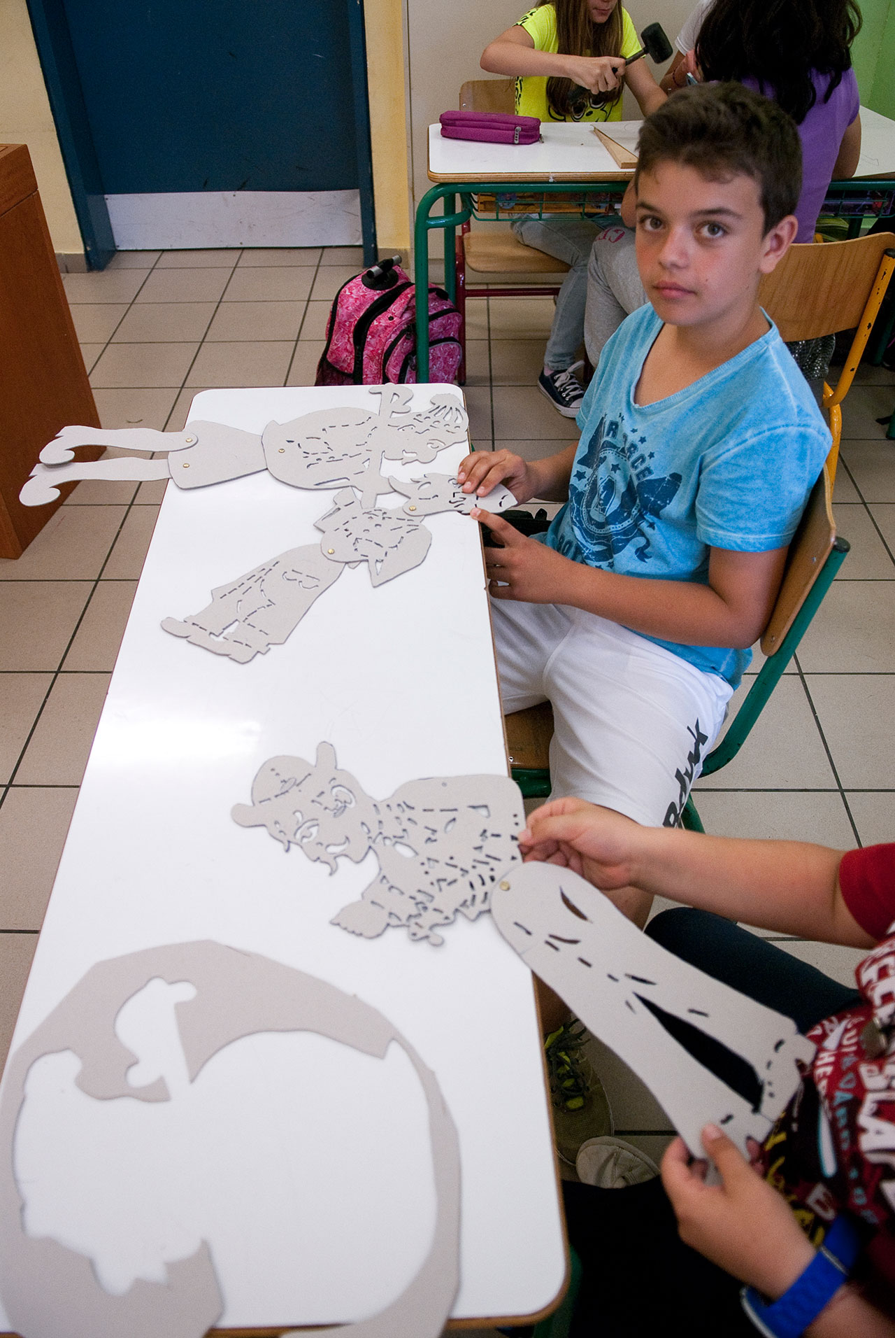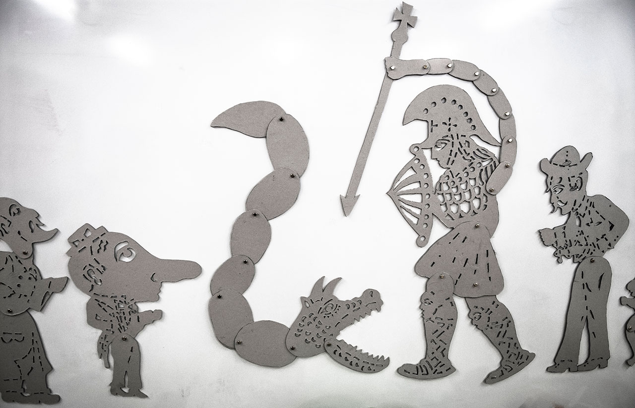 Εργαστήριο παραδοσιακής χειροποίητης σκαλιστής φιγούρας καραγκιόζη σε χοντροχάρτονο.