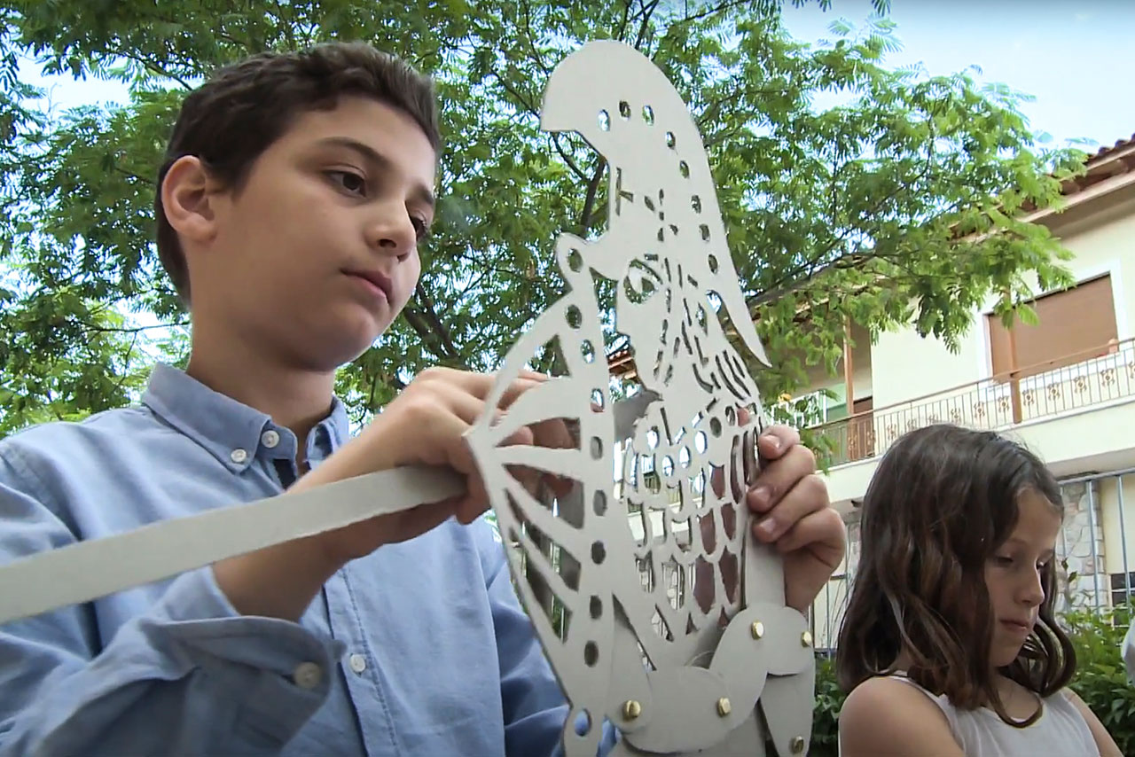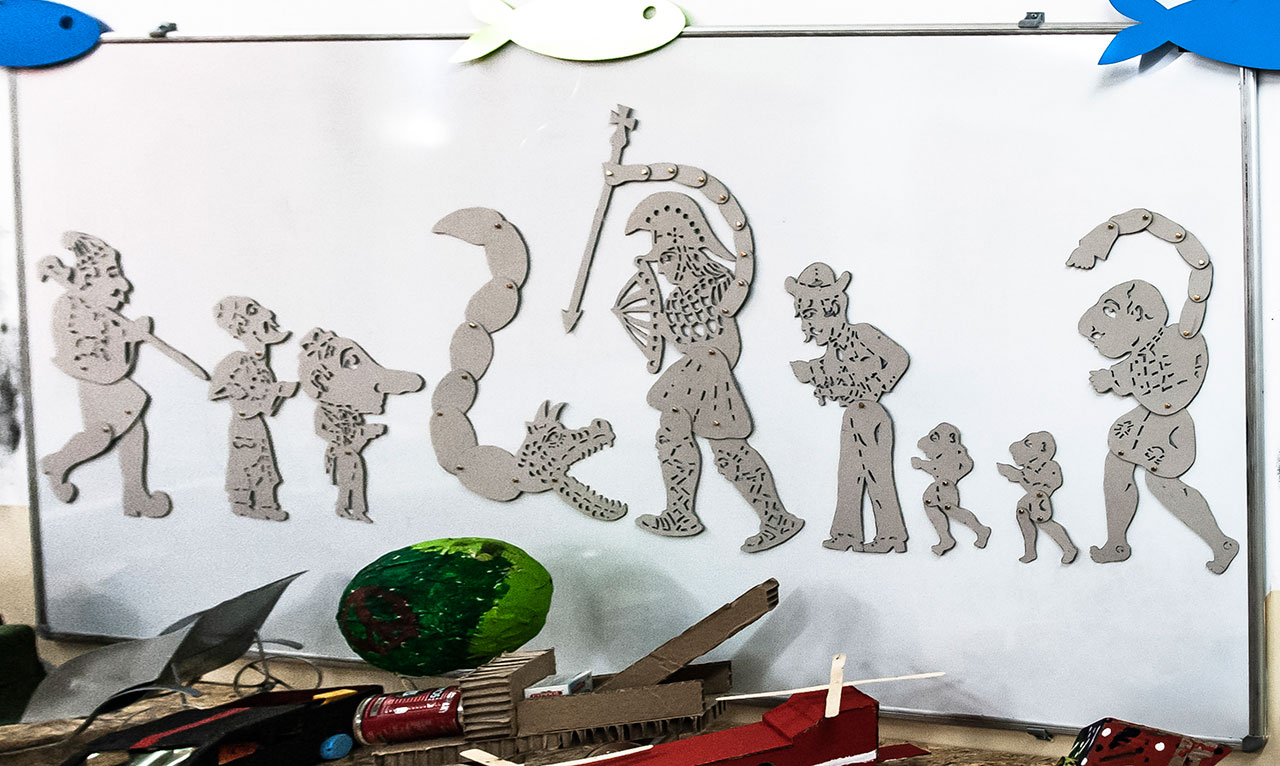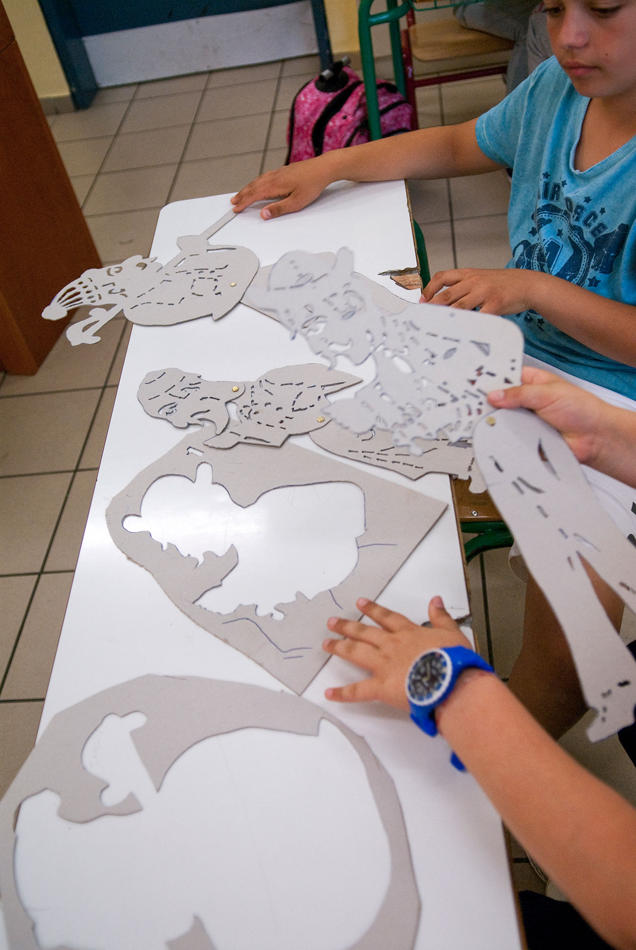 Εργαστήριο παραδοσιακής χειροποίητης σκαλιστής φιγούρας καραγκιόζη σε χοντροχάρτονο.