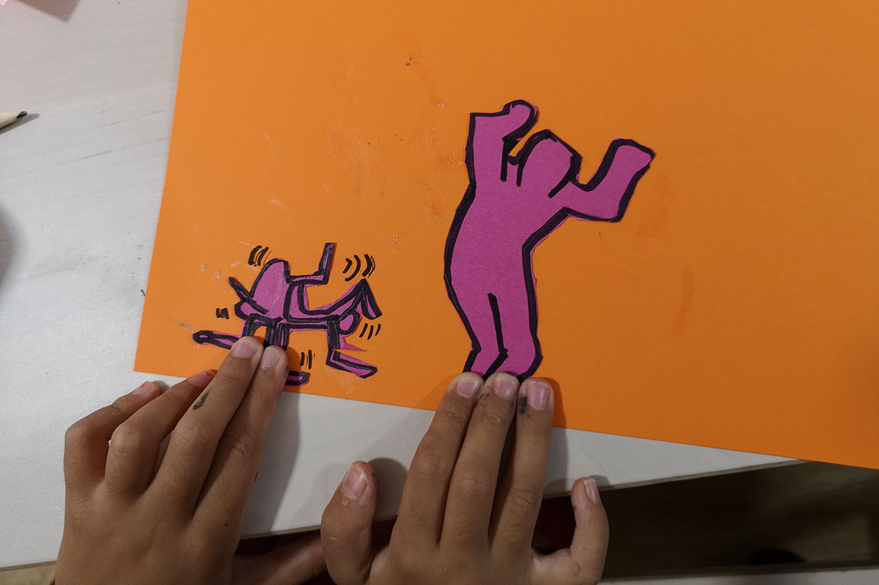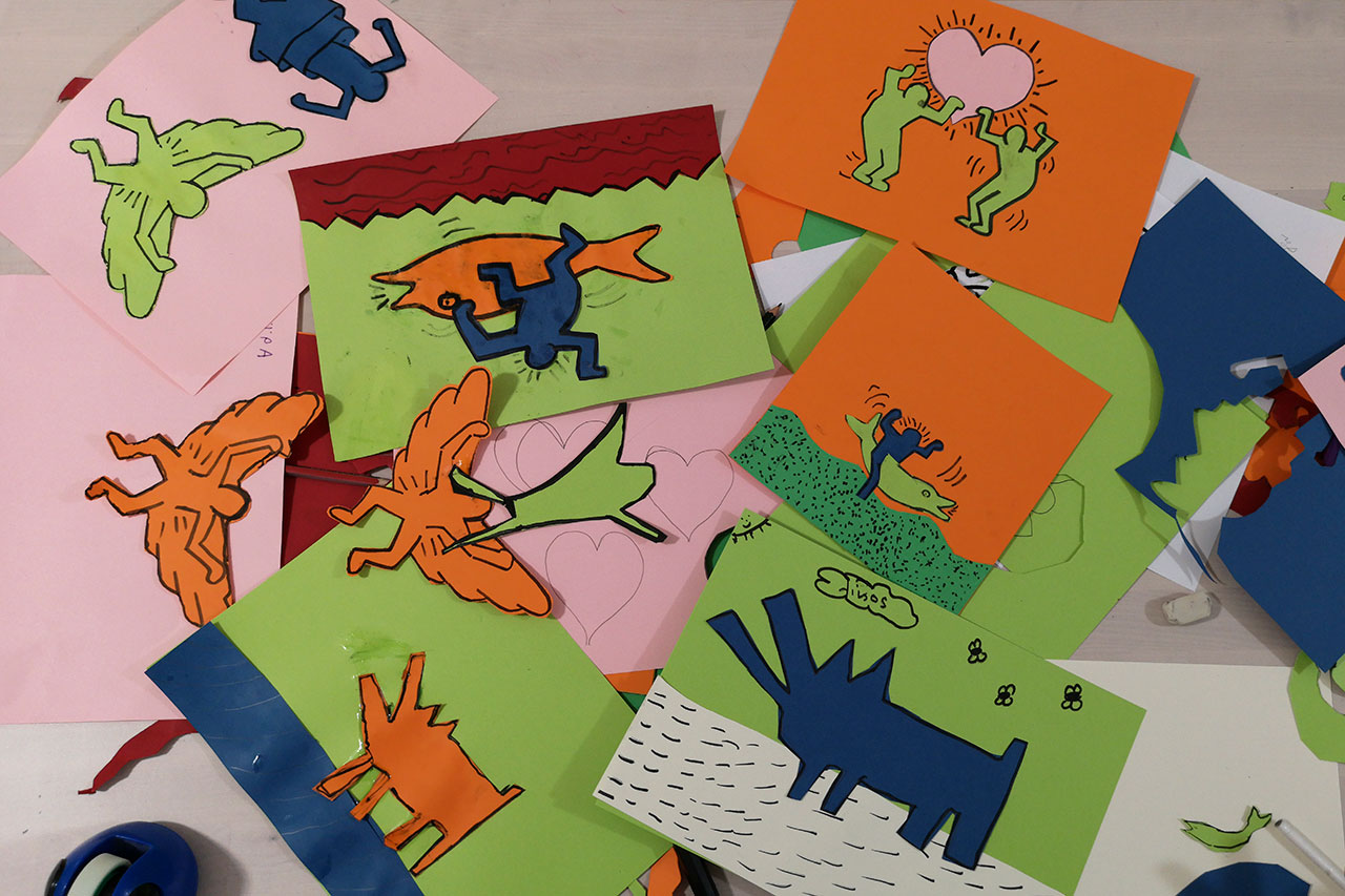 Με αφορμή το έργο του Εικαστικού Καλλιτέχνη Keith Haring (1958 - 1990), δημιουργούμε τα δικά μας κολλάζ με χρωματιστά χαρτόνια.