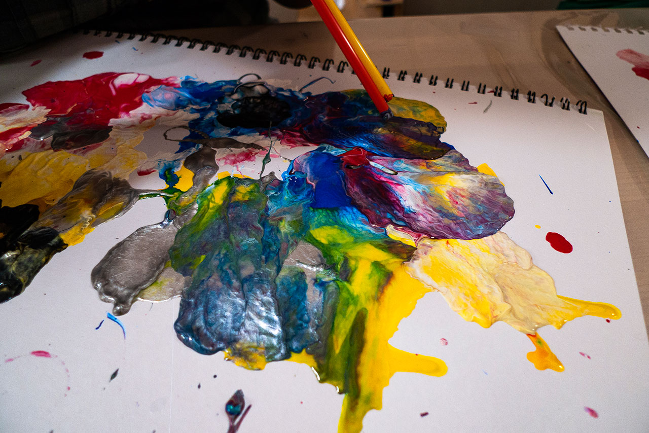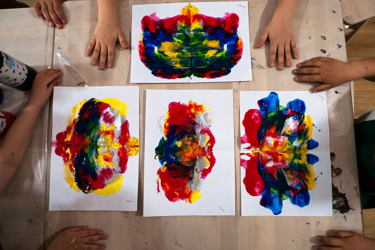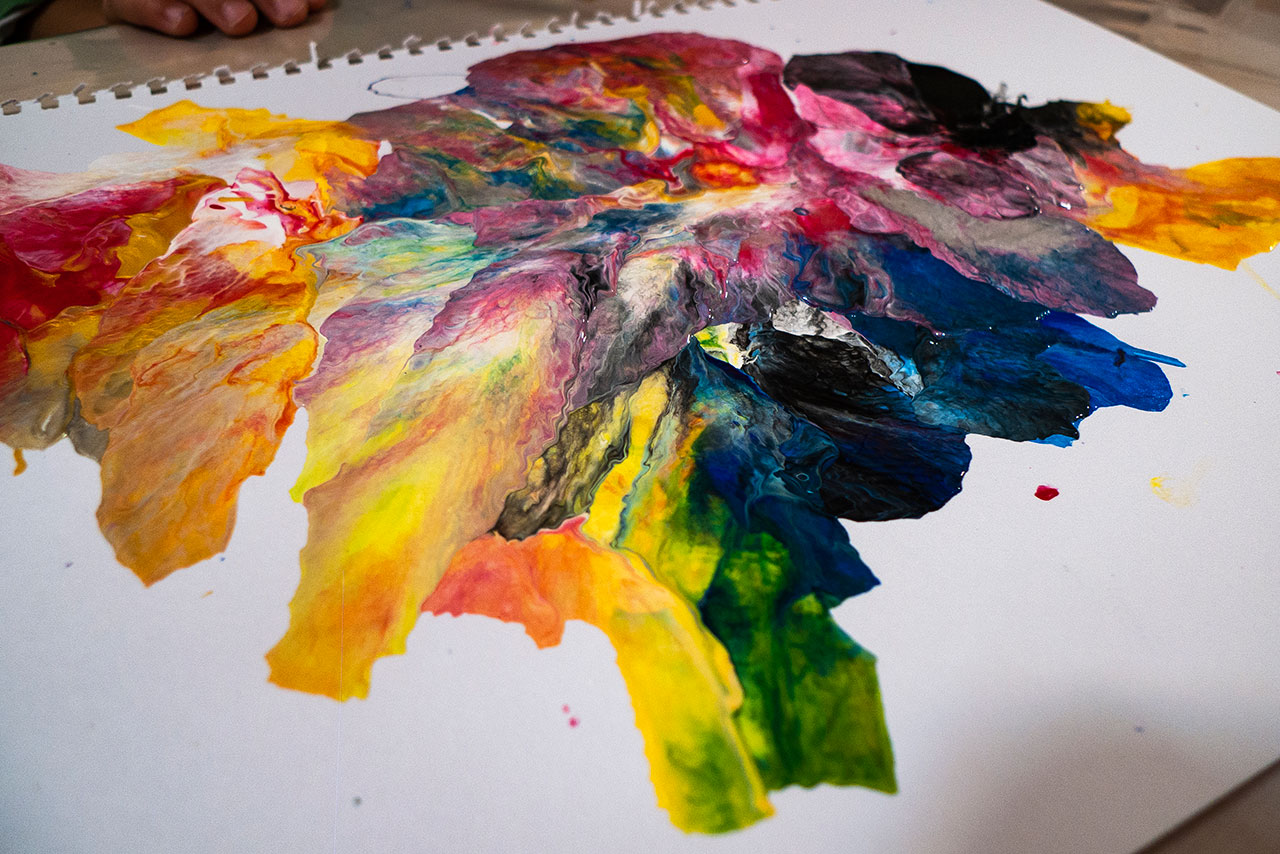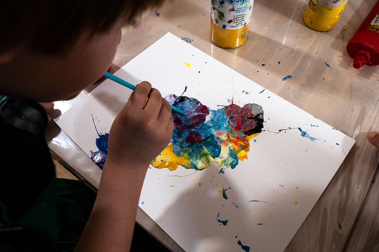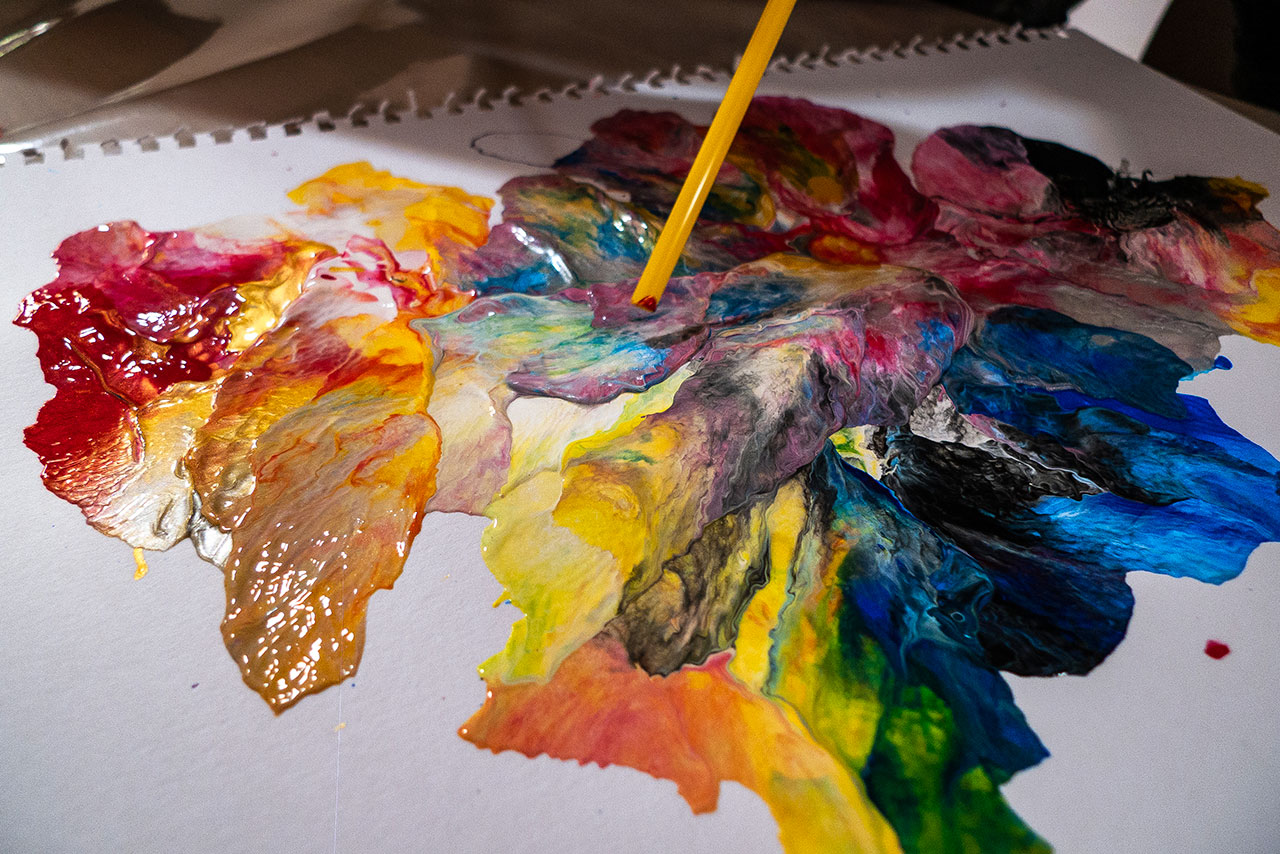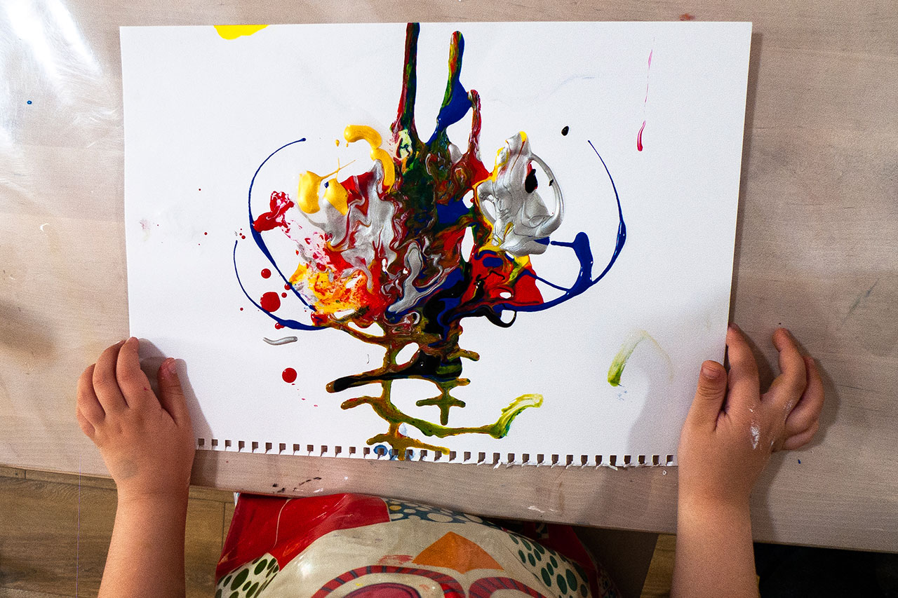 Αξιοποιώντας την δύναμη του αέρα και την δυναμική της κίνησης των χρωμάτων που αποκτούν φυσώντας με ένα απλό καλαμάκι, δημιουργούμε ευφάνταστους χρωματικούς συνδιασμούς. Τα παιδιά ανακαλύπτουν με έναν πρωτότυπο τρόπο τις ιδιότητες των χρωμάτων και φτιάχνουν τα δικά τους έργα ‘’Αφηρημένης Τέχνης’’.